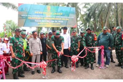 Didampingi oleh Kapten Czi Obet Subagiyo, Babinsa Serka Suhartono dan Koptu Suriansyah, konsultan melakukan pengukuran dan pemasangan patok dari STA-0 hingga ke STA-1725.