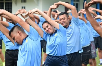 Disampaikan oleh Serka Abdul Hamid sebanyak 49 orang (30 Laki-laki dan 10 Perempuan) mengikuti pembinaan fisik yang dilakukannya setiap hari Selasa, Rabu dan Sabtu setiap minggu,”ucapnya